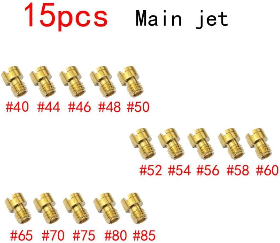 15PCS Main Jet 40# - 85# injectors nozzle for GY6 4mm 49cc/50cc/80cc/100cc CVK carburetor carb scooter 139QMB/139QMA Material: Copper Nozzle sizes: #40, #44, #46, #48, #50, #52, #54, #56, #58, #60, #65, #70, #75, #80, #85 Packing: Neutral box Net weight per piece: 8.7G or 12.3G Package contents: 1 set of nozzles Suitable for motorcycle modification, racing, or repair to improve performance and power Compatibility Disclaimer: This is an aftermarket replacement part. Any brand names or model designations mentioned are used solely for the purpose of demonstrating compatibility.