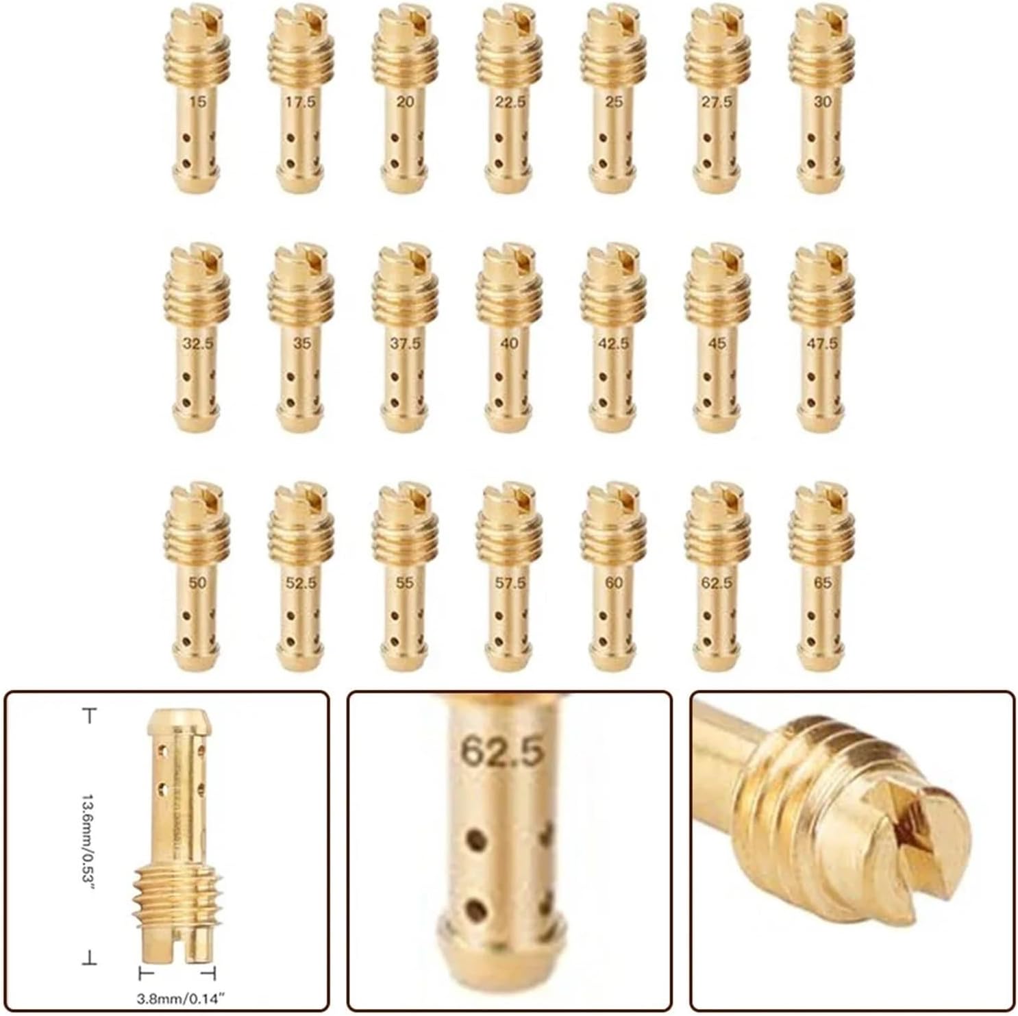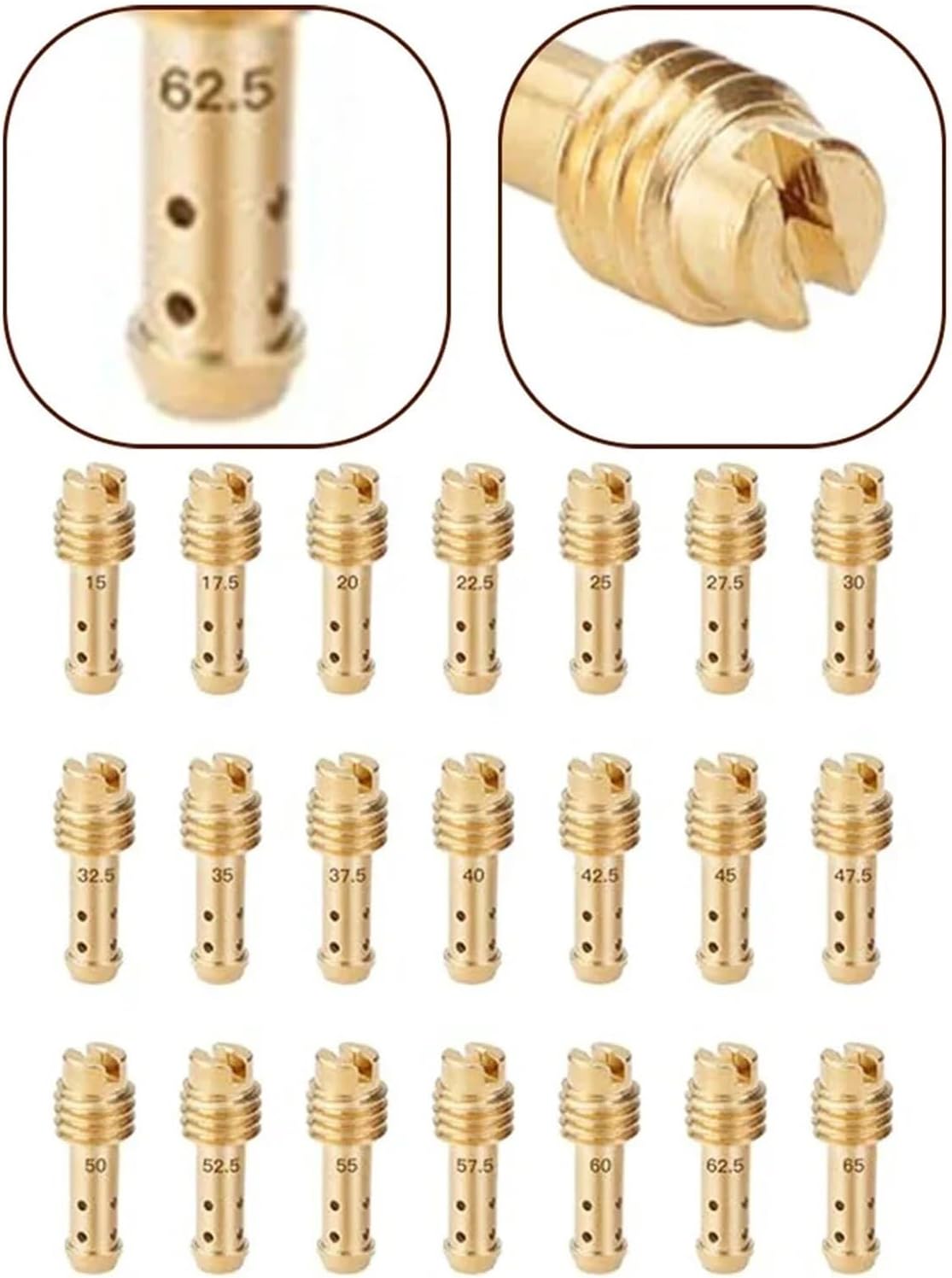 Features:* 21pcs Carburetor Jet Pilot Kit: This kit includes 21 pilot jets with 8 bleed holes, allowing for precise carburetor tuning.* Wide range of sizes: The pilot jets in this kit come in sizes ranging from 15 to 65(15, 17.5, 20, 22.5, 25, 27.5, 30, 32.5, 35, 37.5, 40, 42.5, 45, 47.5, 50, 52.5, 55, 57.5, 60, 62.5, 65), providing options for different engine and exhaust configurations.* Necessary for carburetor adjustments: If you make changes to your engine or exhaust , it is essential to adjust the carburetor settings. This kit provides the main and pilot jets required for fine-tuning.* Improved performance: By selecting the appropriate pilot jet from this kit, you can optimize the fuel mixture and achieve better engine performance.* Easy to use: The pilot jets are designed for compatibility with for MikuniVMTMTMX VM22210, AX100, EN, and GN carburetors, ensuring a hassle-free installation process.Specifications:*Part Name:Carburetor Jet Pilot Kit*Material:copper*Size:5.0x0.8mm *Color:as the picture shows* Fitment:A *OEM Number:N *Fitment: for Mikuni VM/TM/TMX VM22/210, AX100, EN GN*Placement on Vehicle:N *Type:Carburetor Jet Pilot KitWelcome to our store! We provide a comprehensive selection of automotive parts and accessories. Our product range covers headlight assemblies, body parts, and functional auto gadgets, all made to fit a variety of compatible vehicle models.