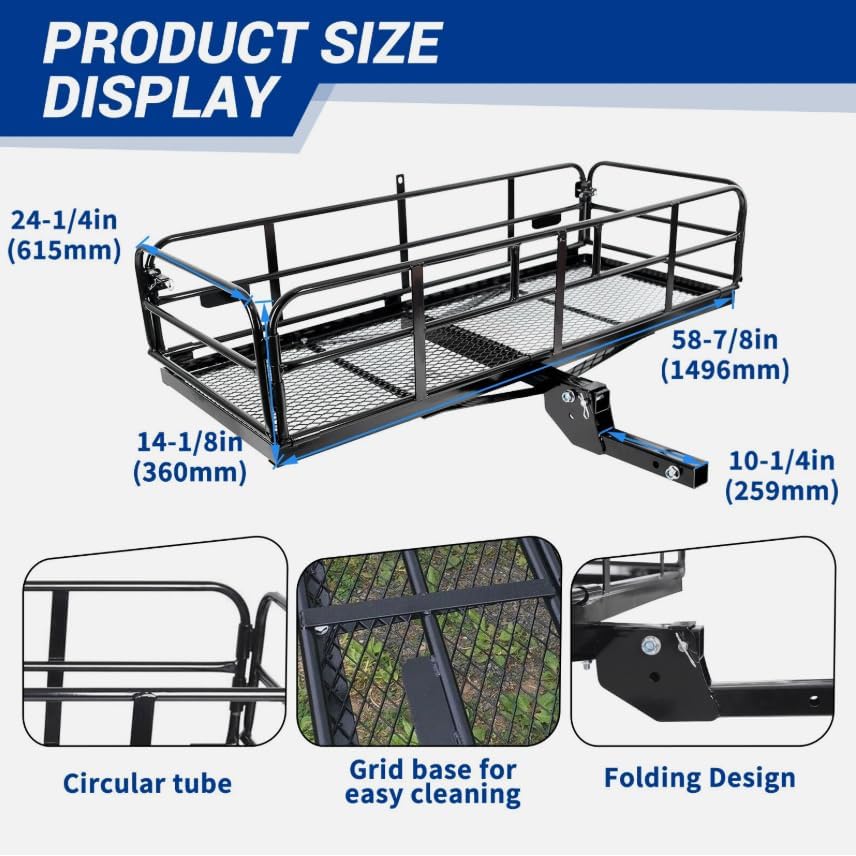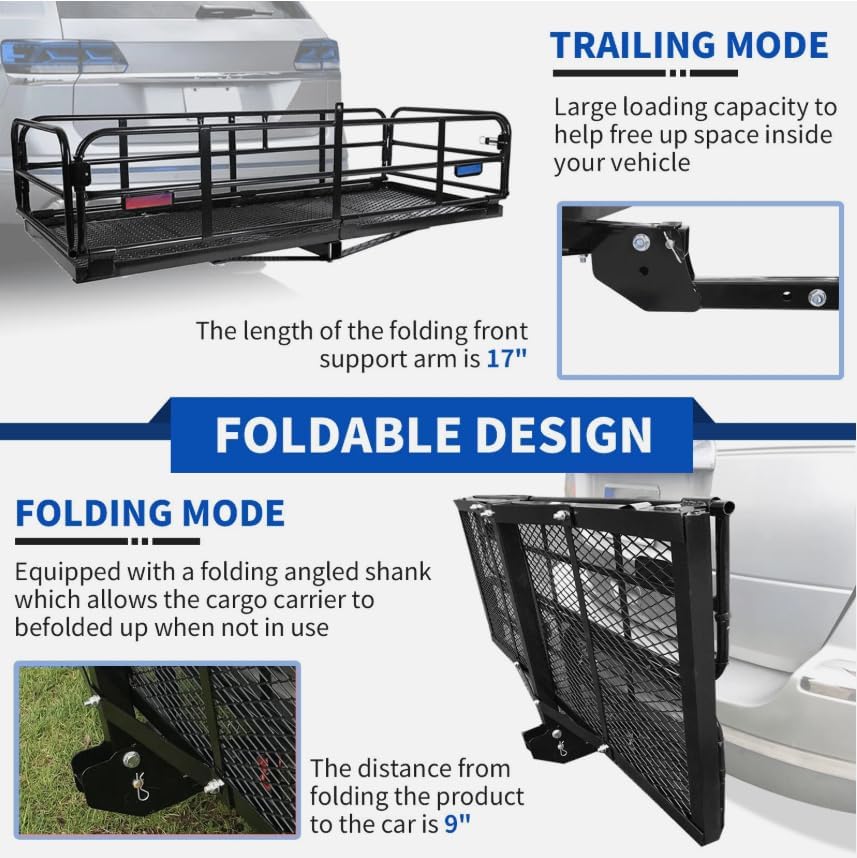 500LBS Foldable Hitch Cargo Carrier Mounted Basket Luggage Rack w/ 2" Receiver