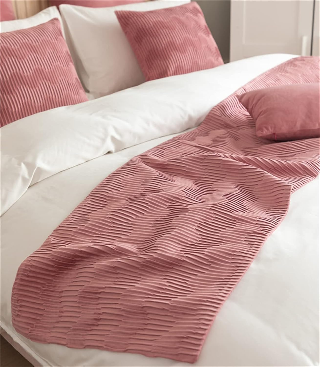 Fudaiki Bed Runner Solid Quilted Fleece Breathable Modern Bedding Scarf Protection for Bedroom Hotel Material:Made of comfortable blending material,quilted details,fleece,soft, durable and fade-resistant. Multi-function: Helps protect your bed from stains and dirt and add much elegance to your bedding. 3 Sizes Available of Bed Runner: 45*180cm suits for 1.5m bed, 45*210cm suits for 1.8m bed, 45*240cm suits for 2m bed. Package: 1 x bed runner (cushion cover NOT included ). If you need to buy matching cushion, Please select a matching cushion case in the purchase options. Care Instruction: Machine washable with water below 30 degrees Celsius. Package: 1 x bed runner(without throw pillow cover). Perfect Bed Decoration: Bedding suitable For single size bed, twin size bed, king size bed, Queen size bed, couch, garden chair cushion, families, bedrooms, schools, hotels, high-end hotel, guesthouse, homestay, sofa,etc.