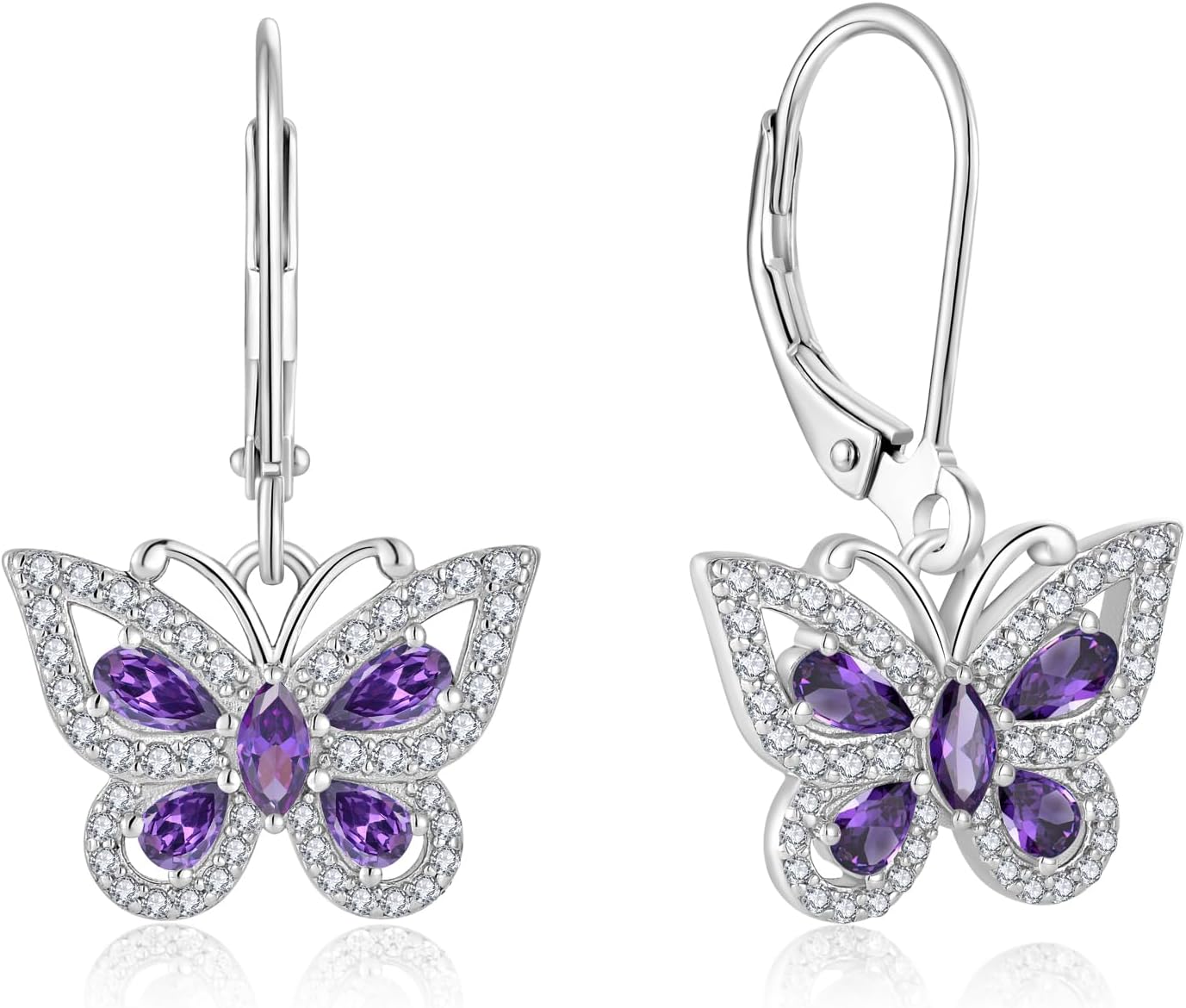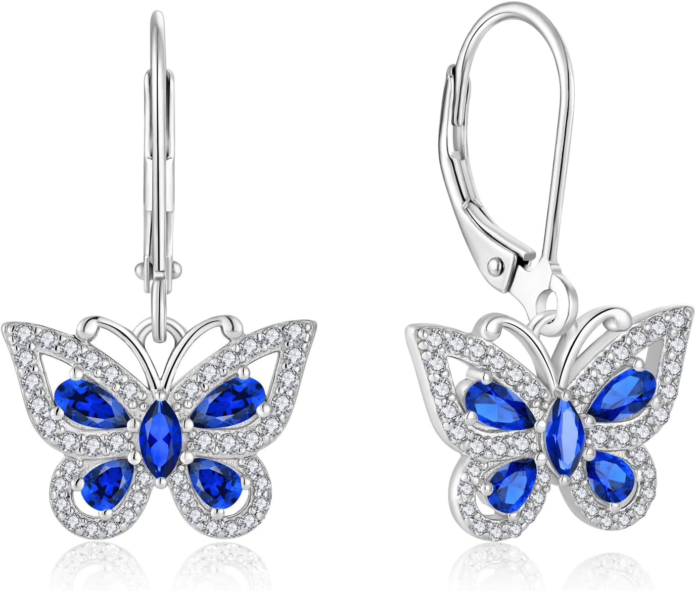 Oskani Butterfly Leverback Dangle Earrings for Women 925 Sterling Silver 5A Cubic Zirconia Jewelry for Valentine Mother's Day Birthday Gifts for Her