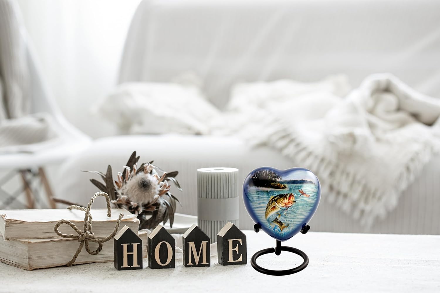 Honor the memory of your loved one with this Bass Fishing Heart Keepsake Urn, a touching “Gone Fishing” tribute designed for families who want to preserve a small portion of ashes in a meaningful way. Shaped like a heart and adorned with a detailed bass fishing design, this keepsake represents freedom, peace, and the cherished memories of time spent by the water.