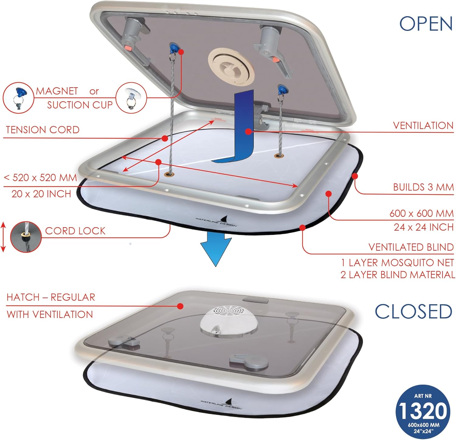 The perfect mix: it has a 3-layer system that allows the mosquito net and 100% opacity in the same product. The combination of the two layers of curtain / louver and one layer of mosquito net darkens while allowing air to pass through and keeping mosquitoes out of the boat.