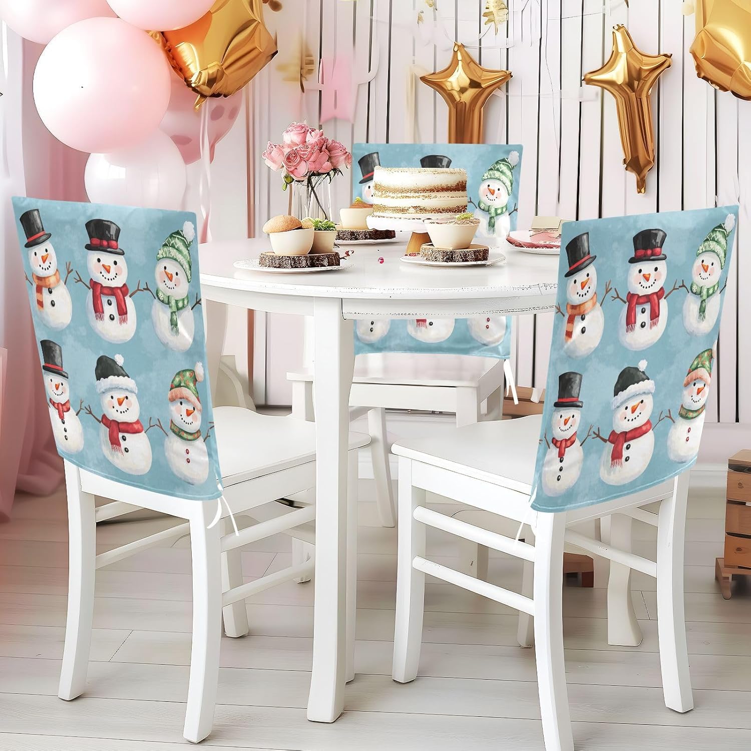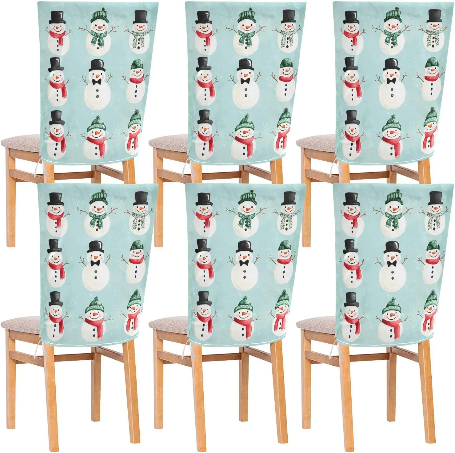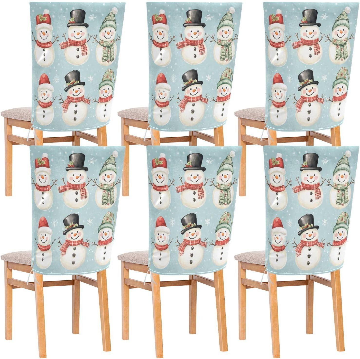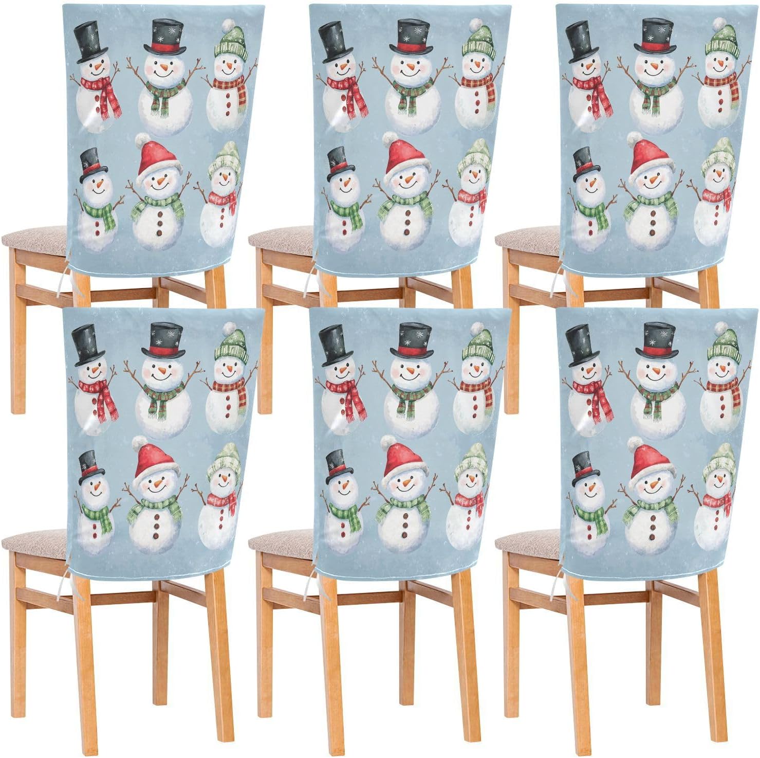 MNSRUU Christmas Chair Back Cover for Dining Room,Snowman Chair Slipcovers Set of 6,Snowman Chair Cover for Kitchen Hotel Holiday Party Decor,374