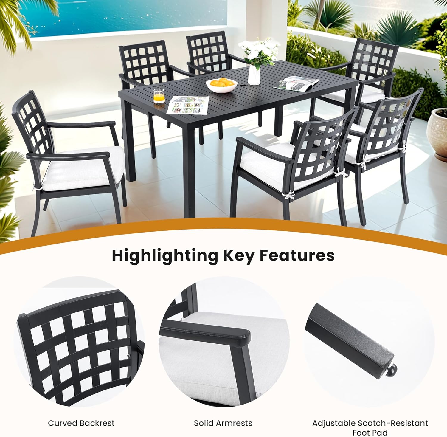 Elevate your outdoor experience with this Modern Classic Cast Aluminum Dining Chair, a perfect blend of timeless elegance and contemporary design. Crafted with premium cast aluminum and featuring a textured Ember Black finish, this chair offers exceptional weather resistance and a sleek, modern aesthetic. The ergonomic backrest, adorned with a beautiful lattice pattern and smooth curves, provides optimal support, while the concave seat ensures effortless comfort. The gently curved frame and robust curved leg support enhance relaxation and stability on any surface. Complete with a high-quality Sunbrella cushion in Cast Silver, this chair combines durability, weather resistance, and distinctive style. Perfect for patios, gardens, or poolside settings, it seamlessly blends functionality with elegance, making it the ideal choice for your outdoor sanctuary.