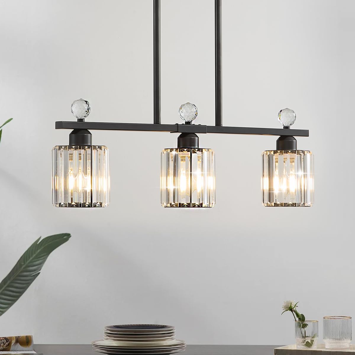 Our modern luxury black pendant lighting, with crystal lampshades and iron hanging rods, is a perfect choice for your home. It works as pendant lights kitchen island, chandeliers for dining room, dining room chandelier over table and hanging lamp, also fits as kitchen lighting fixtures ceiling, kitchen light fixtures and pendant light fixtures. Equipped with 2 adjustable rods for height customization, E26 bulb base supports free replacement and dimmable bulbs. Suitable for kitchen pendant lights, island lights for kitchen, hanging lights for kitchen, dining room light fixtures over table, dining room light, dining light fixture, kitchen light, kitchen lamp and kitchen light fixture. Easy to install, blending practicality and modern decor.