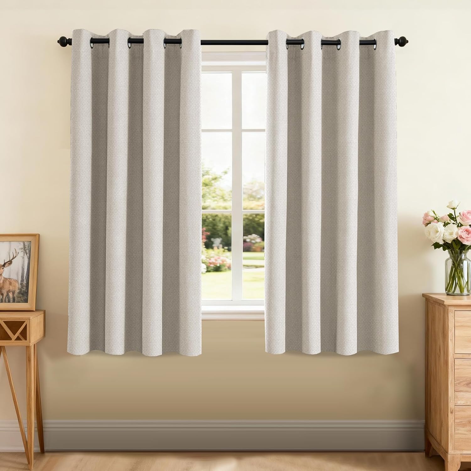 • TRIPLE WEAVE: Triple-weave light-blocking fabric with dense jacquard layer,insulating barrier and grey flocked backing blocks all sunlight and UV rays, creating total darkness and room-darkening.Curtains balances room temperature by blocking heat in summer and cold in winter.
