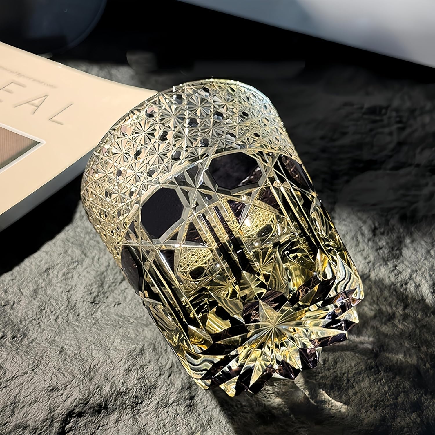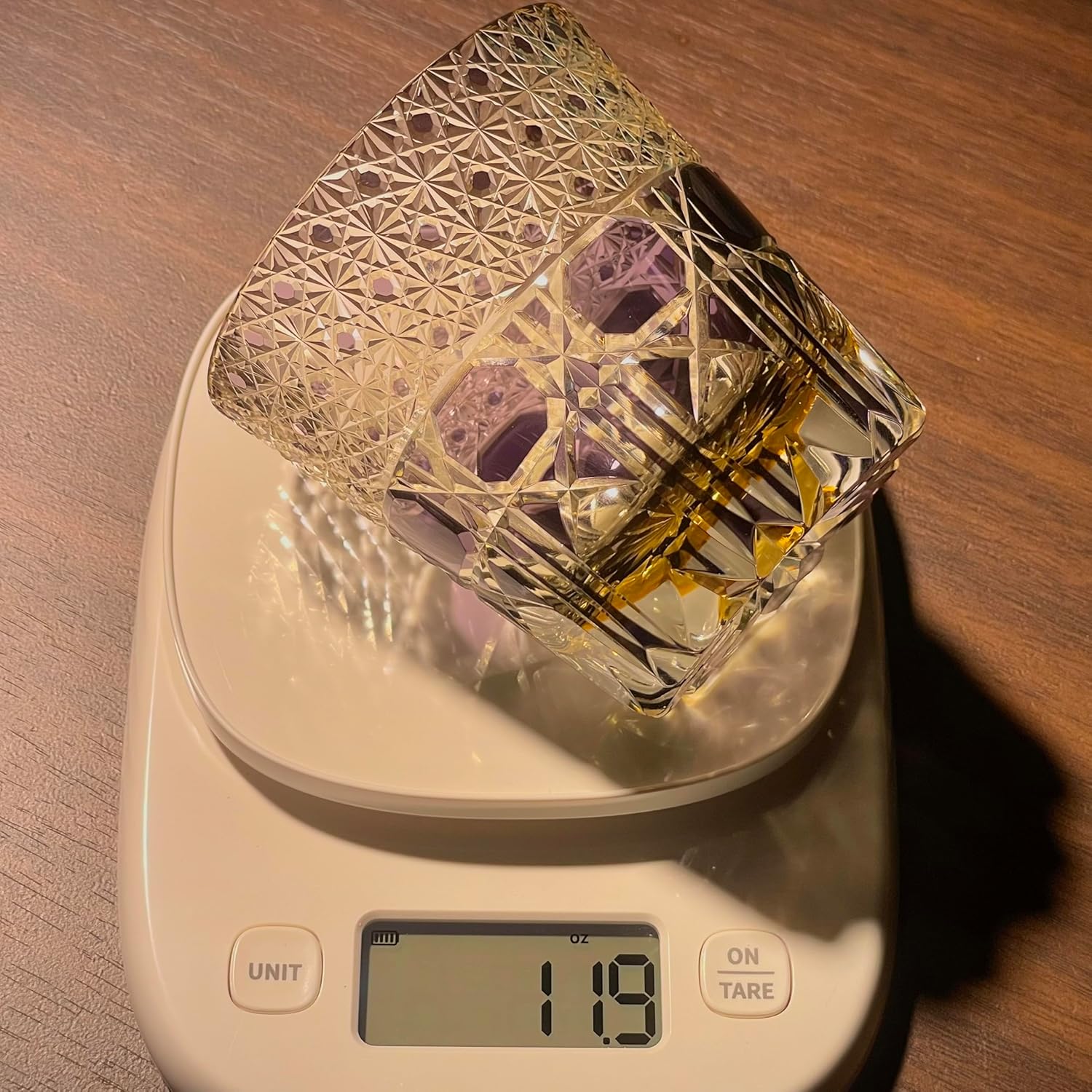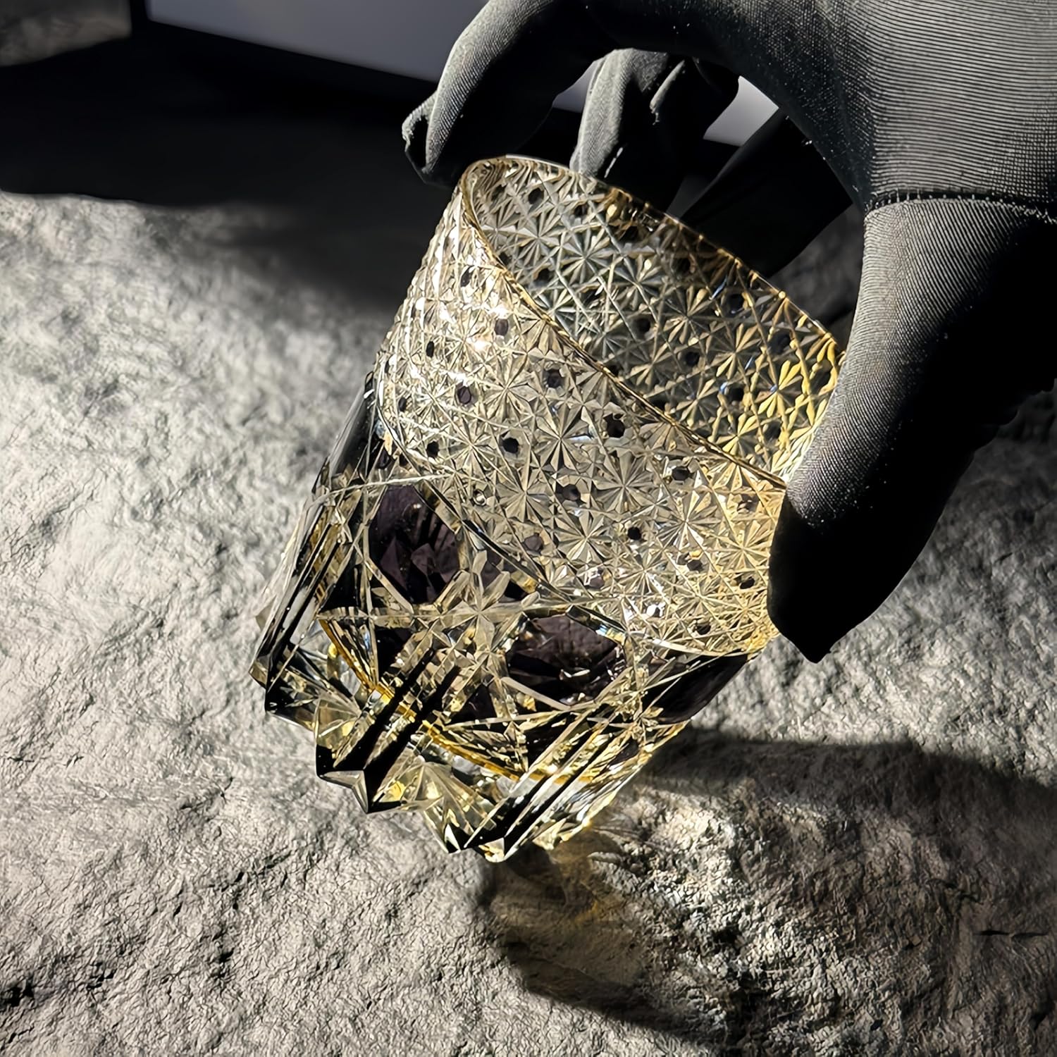 Elevate your drinking experience with this exquisite Edo-style hand-cut crystal glass tumbler. This 11-ounce masterpiece showcases intricate diamond patterns and geometric designs that catch and reflect light beautifully, featuring a stunning combination of clear crystal with elegant blue accents. The sophisticated cut-glass pattern pays homage to traditional Japanese craftsmanship while maintaining contemporary appeal. Perfect for serving whiskey, cocktails, vodka, or beer, this versatile tumbler offers both style and functionality. The substantial weight and premium crystal construction provide a luxurious feel in hand, while the carefully crafted details make each sip a memorable experience. Each glass comes presented in a luxury gift box, making it an ideal choice for special occasions or as a thoughtful present for spirits enthusiasts. The classic design seamlessly blends with both modern and traditional décor, making it a timeless addition to any glassware collection. Hand washing is recommended to preserve the crystal's brilliant clarity and intricate detailing.